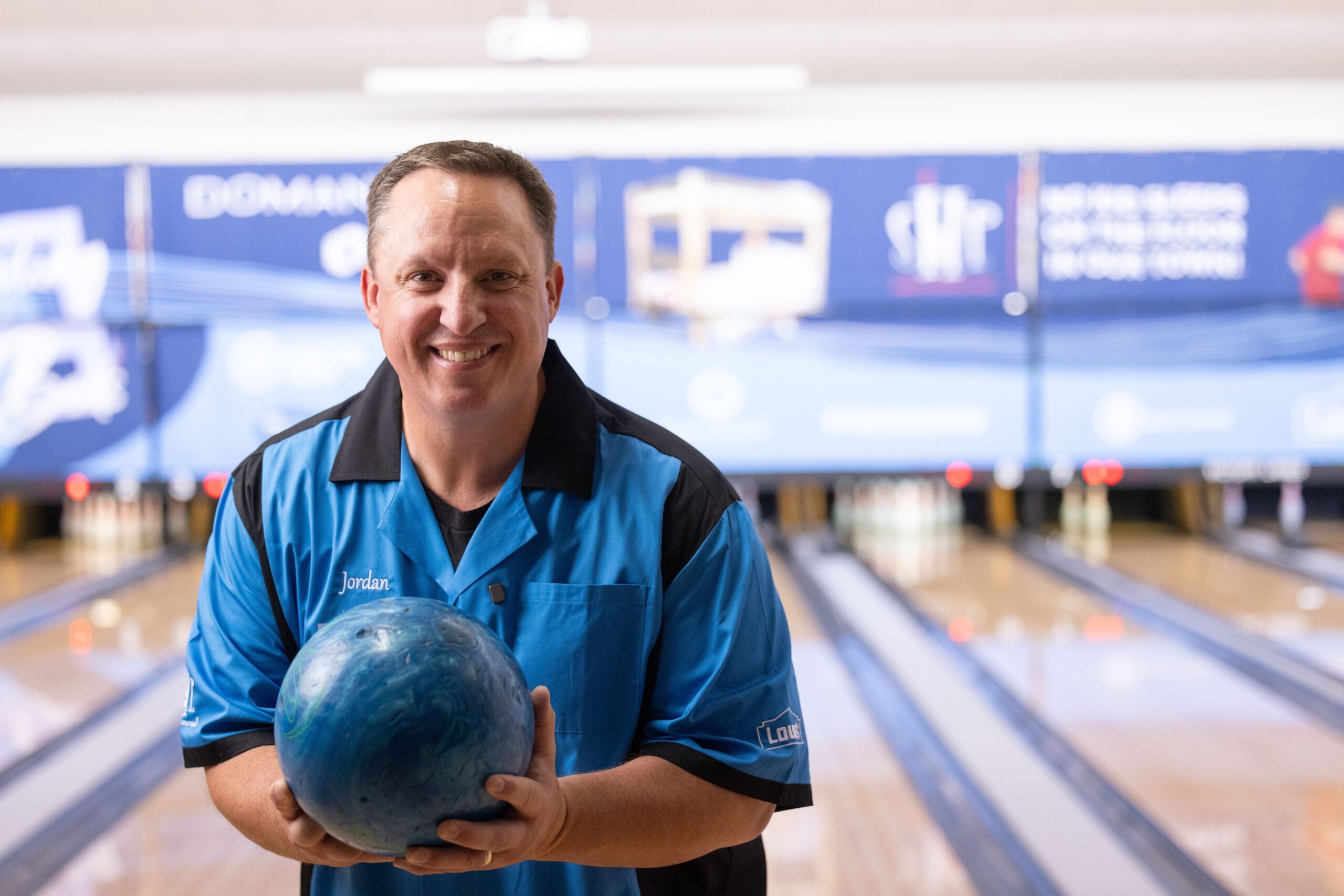 Jordan Allen, executive director and CEO of SHP, poses for a photo in front of the lanes.